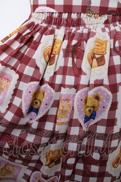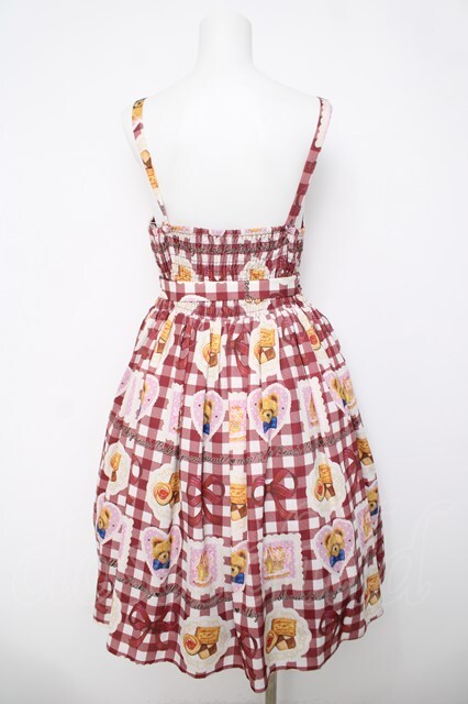 axes femme kawaii / ベアズベーカリー柄ジャンスカ 赤 Y-26-04-03-118-AX-OP-SZ-ZY