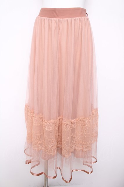 axes femme / レース×チュールスカート サーモンピンク Y-26-04-03-145-AX-SK-SZ-ZY