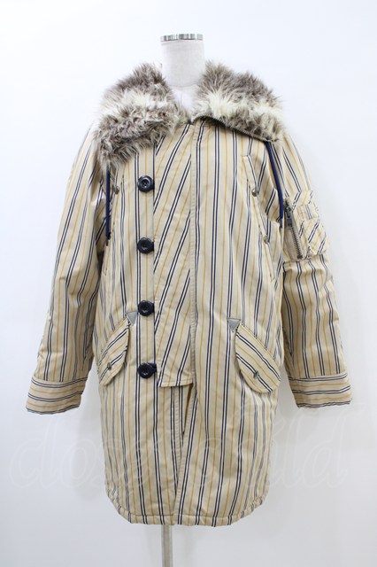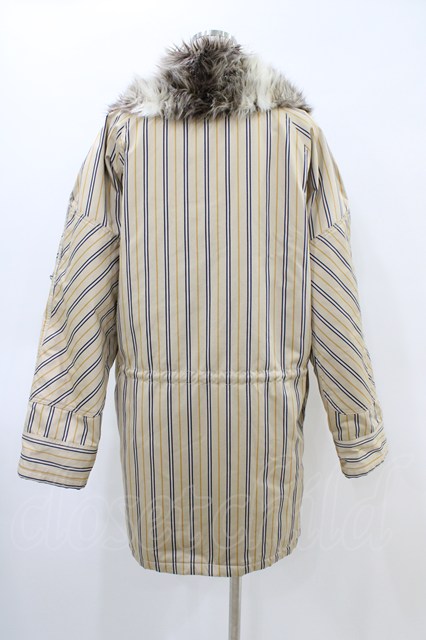 MILKBOY / ファーカラーモッズコート ベージュストライプ H-26-04-02-1062-MB-CO-KB-ZH