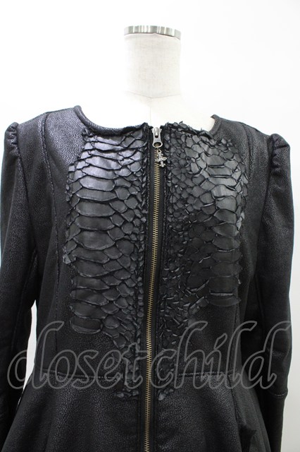 h.NAOTO / ドラゴンレザー切替ZIPコートワンピース 黒 H-26-04-02-1006-HN-CO-KB-ZH