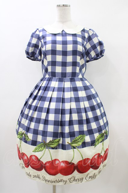 Emily Temple cute / アニバーサリーチェリーワンピース 青 H-26-04-02-1020-ET-OP-KB-ZH