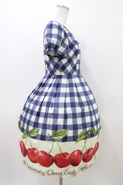 Emily Temple cute / アニバーサリーチェリーワンピース 青 H-26-04-02-1020-ET-OP-KB-ZH [2100030000061328-H-26-04-02-1020-ET-OP-KB-ZH]