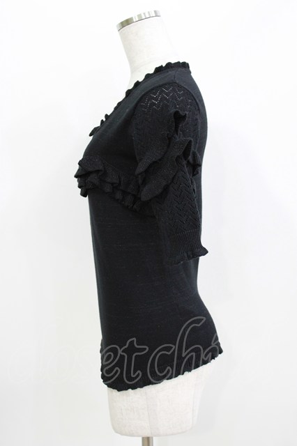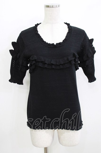 Shirley Temple / ラメフリルパフニット 黒 H-26-03-30-066-ET-TO-KB-ZH