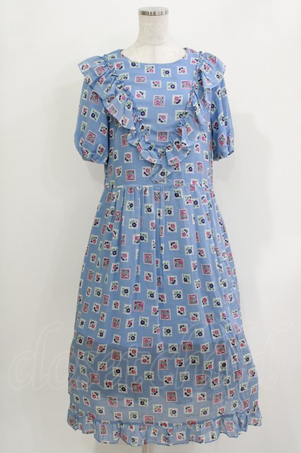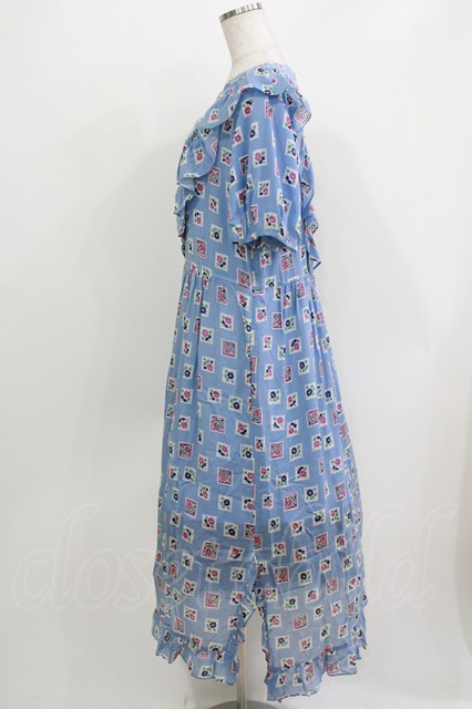 Jane Marple Dans Le Salon / Flower Stamp Empireワンピース M サックス H-26-03-30-028-JM-OP-KB-ZH