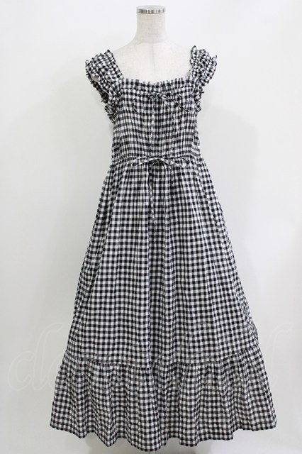 Jane Marple / シャーリングギンガムキャミソールドレス ブラック H-26-03-30-026-JM-OP-KB-ZH