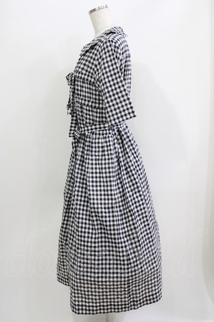 Jane Marple / シャーリングギンガムリボントリムドレス ブラック H-26-03-30-025-JM-OP-KB-ZH