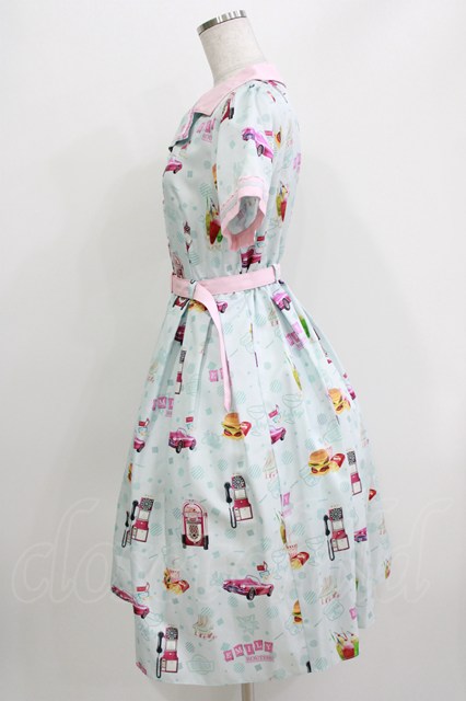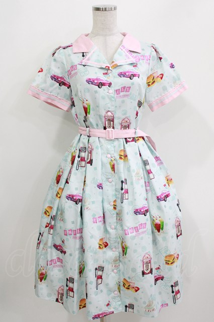 Emily Temple cute / アメリカンダイナーワンピース サックス H-26-03-30-047-ET-OP-KB-ZH [2100030000058521-H-26-03-30-047-ET-OP-KB-ZH]