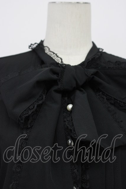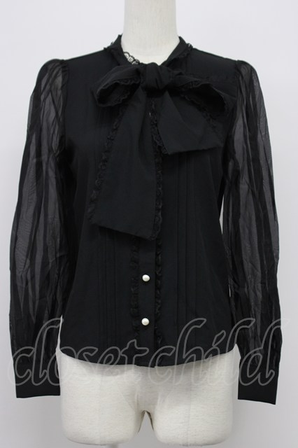 Ank Rouge / パールボタンチュール袖ブラウス 黒 T-26-03-31-001-CA-BL-SA-ZT
