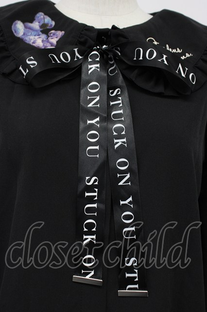 Leahmatin / クマ柄開襟シャツ 黒x青 T-26-03-31-004-LO-BL-SA-ZT