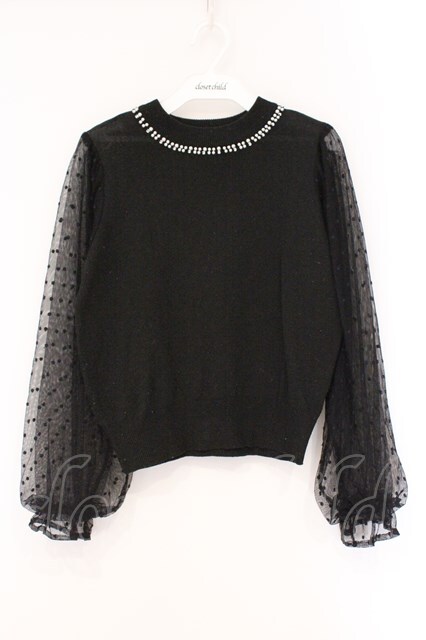 axes femme / 袖ドットチュールプルオーバー M クロ O-26-03-29-093-AX-TO-OW-OS