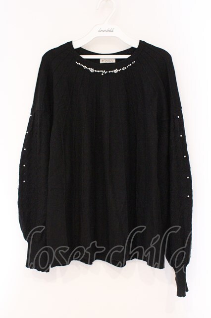 axes femme / パール付ボリューム袖ニット F クロ O-26-03-29-031-AX-TO-YM-OS
