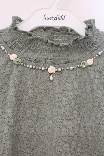 axes femme / ビジューデザイン総レースプルオーバー F グリーン O-26-03-29-076-AX-TO-YM-OS