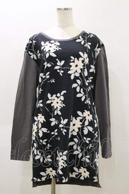 MINT NeKO / 花柄プリントワンピース 黒×グレー H-26-04-04-080-HN-OP-AK-ZH [2100030000090675-H-26-04-04-080-HN-OP-AK-ZH]