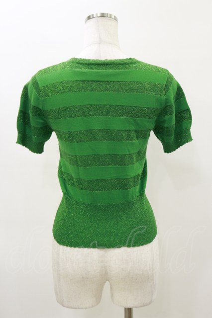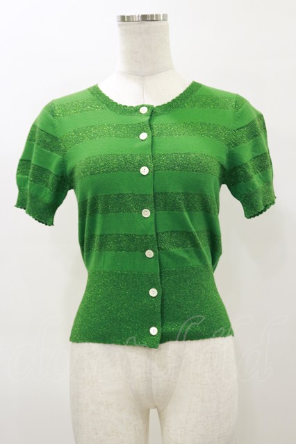 Emily Temple cute / ラメボーダー半袖カーデ グリーン H-26-04-04-036-ET-TO-KB-ZH [2100030000074459-H-26-04-04-036-ET-TO-KB-ZH]