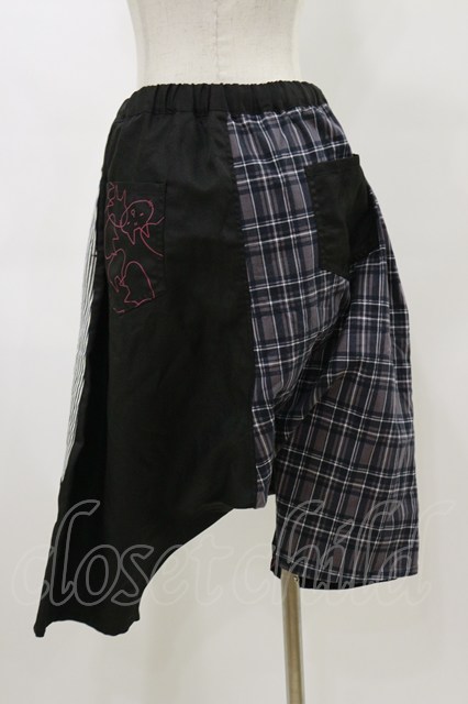MINT NeKO / 柄切替プリントパンツ 黒 H-26-04-04-045-HN-PA-AK-ZH