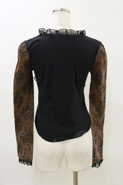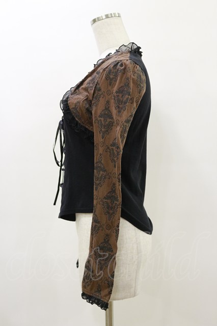 STEAM / レイヤード風レースアップカットソー 黒×茶 H-26-04-04-020-HN-TO-AK-ZH [2100030000090680-H-26-04-04-020-HN-TO-AK-ZH]