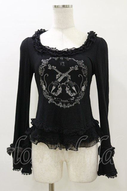 h.NAOTO / プリントフリルカットソー 黒 H-26-04-04-024-HN-TO-AK-ZH [2100030000090690-H-26-04-04-024-HN-TO-AK-ZH]