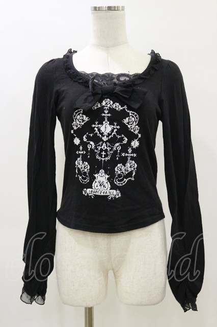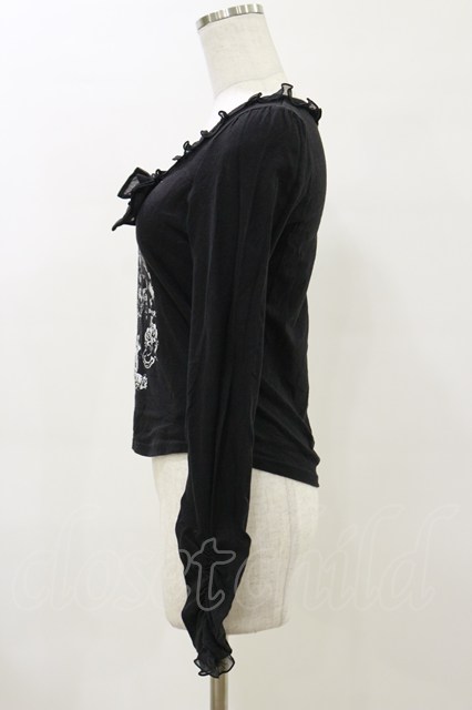 FRILL / プリントフリルカットソー 黒 H-26-04-04-025-HN-TO-AK-ZH [2100030000090663-H-26-04-04-025-HN-TO-AK-ZH]