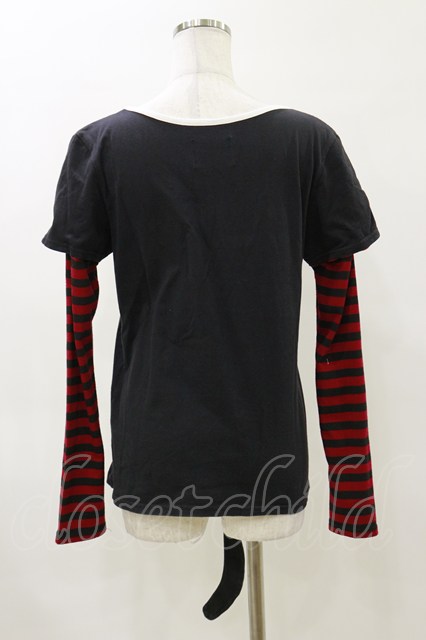 HANGRY&ANGRY / プリントレイヤード風カットソー 黒×赤 H-26-04-04-026-HN-TO-AK-ZH [2100030000090672-H-26-04-04-026-HN-TO-AK-ZH]