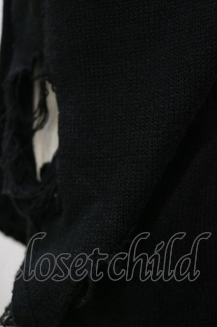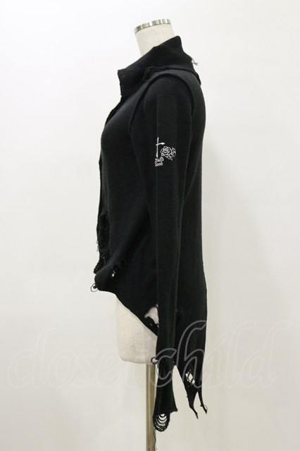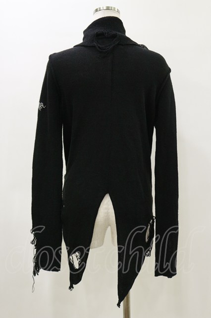 h.naoto Blood / ハイネックダメージニットカーディガン 黒 H-26-04-04-039-HN-TO-AK-ZH [2100030000090664-H-26-04-04-039-HN-TO-AK-ZH]