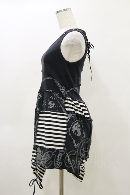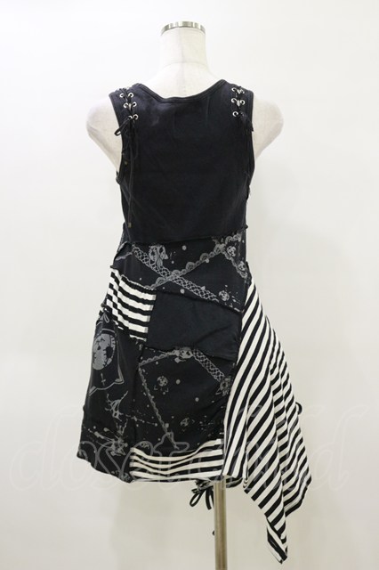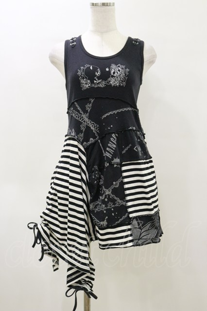 HANGRY&ANGRY / プリント切替アシメワンピース 黒×白 H-26-04-04-070-HN-OP-AK-ZH [2100030000090686-H-26-04-04-070-HN-OP-AK-ZH]