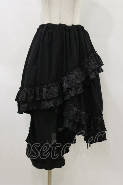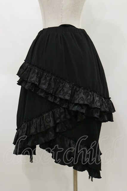 Qutie Frash / ジャガードフリル3段フリルスカート 黒 H-26-04-04-057-QU-SK-AK-ZH