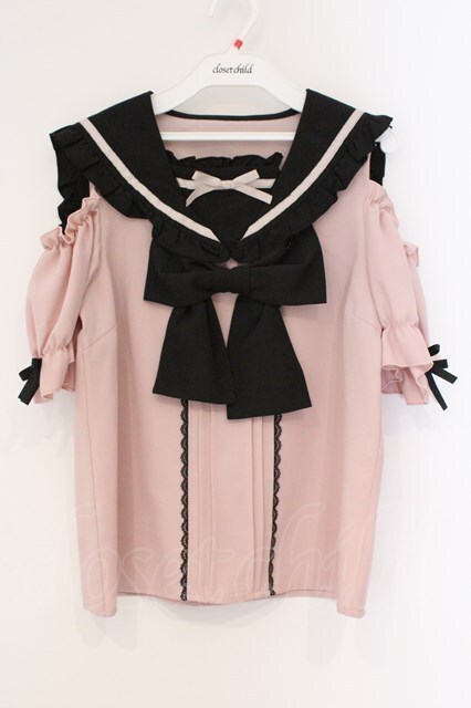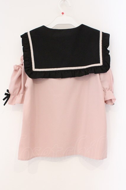 DearMyLove / セーラーオフショルフリルリボンブラウス M ピンク×クロ O-26-03-31-016-EL-BL-IG-OS