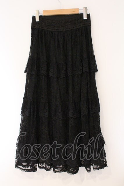 axes femme / 編上レースティアードスカート F クロ O-26-03-31-058-AX-SK-OW-OS
