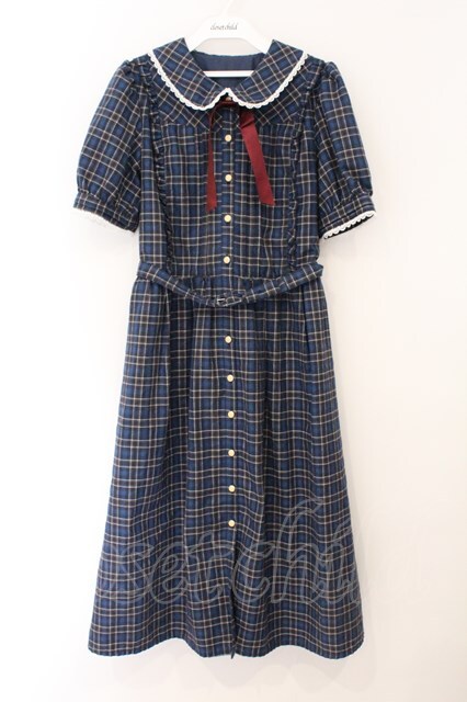 Secret Honey / リボン付きタータンワンピース 2 ブルー O-26-03-31-1059-CA-OP-YM-OS