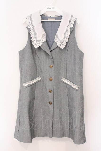 axes femme POETIQUE / レース襟ロングベスト M グレー O-26-03-31-1012-AX-TO-IG-OS