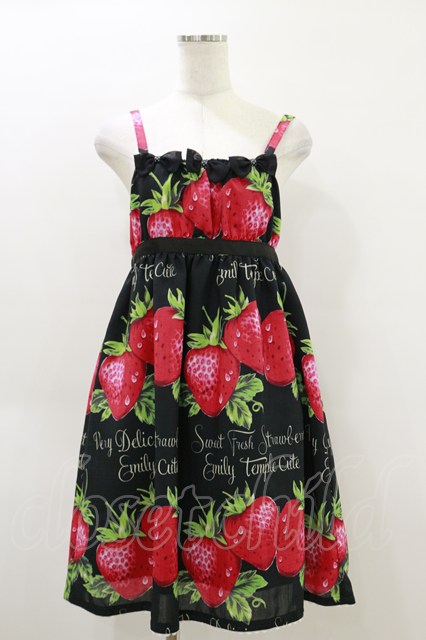 Emily Temple cute / フレッシュストロベリーリボンキャミワンピース ブラック H-26-04-05-049-ET-OP-KB-ZH