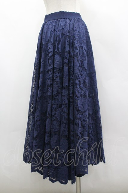 axes femme / レースサーキュラースカート F ネイビー I-26-03-30-066-AX-SK-TE-ZI
