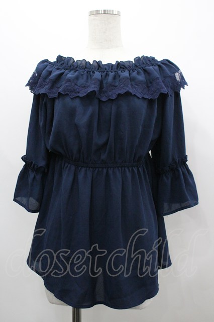 axes femme kawaii / エンパイアフリルブラウス M ネイビー I-26-03-30-007-AX-BL-TE-ZI [2100060000053582-I-26-03-30-007-AX-BL-TE-ZI]