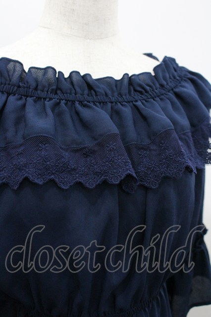 axes femme kawaii / エンパイアフリルブラウス M ネイビー I-26-03-30-007-AX-BL-TE-ZI