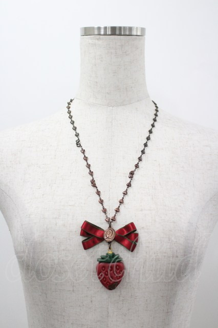 Q-pot. / ストロベリーガナッシュリボンネックレス 赤 I-26-03-30-123-QP-AC-SA-ZI