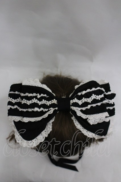 BABY,THE STARS SHINE BRIGHT / シャン・ドゥ・フルールリボンヘッドドレス 黒×オフ白 I-26-03-30-103-BA-AC-TE-ZI
