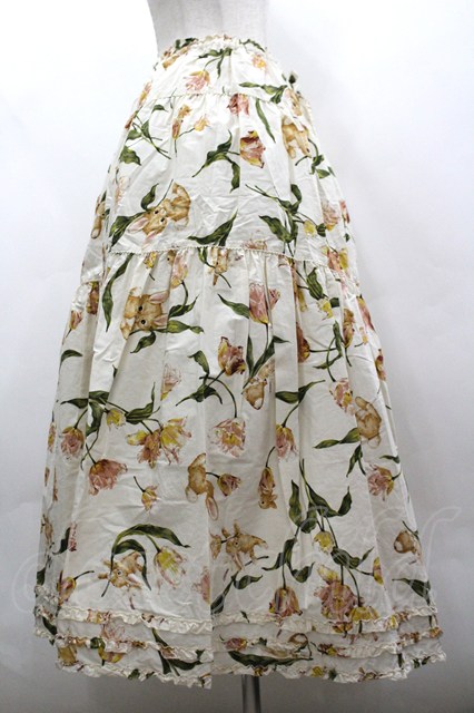 PINK HOUSE / チューリップうさぎプリントスカート 生成り I-26-03-30-072-LO-SK-SA-ZI [2100060000053284-I-26-03-30-072-LO-SK-SA-ZI]