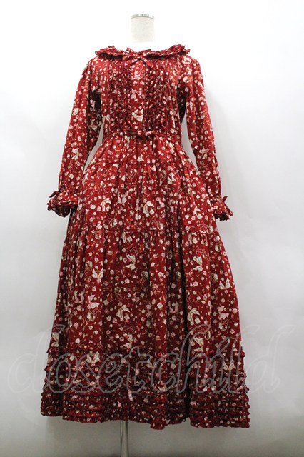PINK HOUSE / バラとリボンプリントワンピース 赤 I-26-03-30-056-LO-OP-SA-ZI