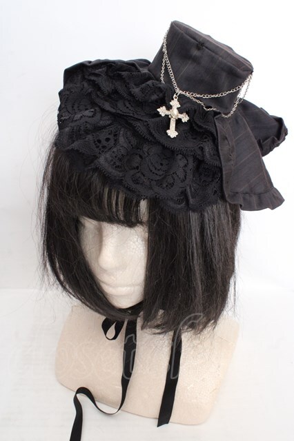MARBLE / チェーンデコレーション十字架付き小帽子 チャコールグレー O-26-04-01-015-GO-AC-IG-OS [2100080000078798-O-26-04-01-015-GO-AC-IG-OS]