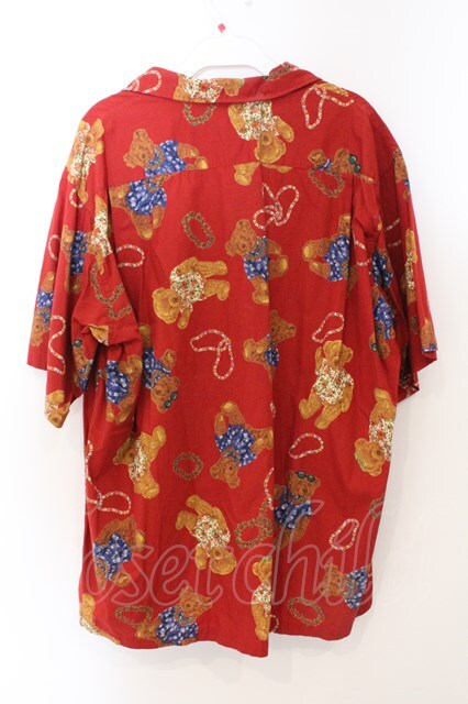 Karl Helmut / ハイビスカスクマ柄アロハシャツ アカ O-26-04-01-051-EL-BL-OW-OS