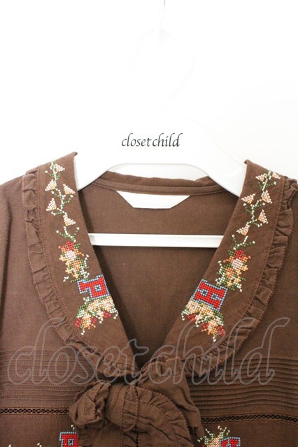 PINK HOUSE / スウェーデン刺繍使いブラウス ブラウン O-26-04-01-056-LO-BL-OW-OS