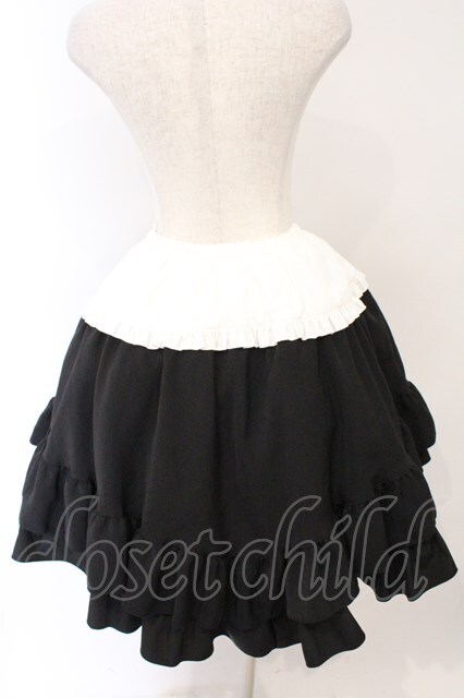 MARBLE / 編み上げ巻きフリルスカート ブラック×ホワイト O-26-04-01-036-GO-SK-IG-OS [2100080000078785-O-26-04-01-036-GO-SK-IG-OS]