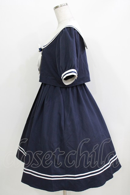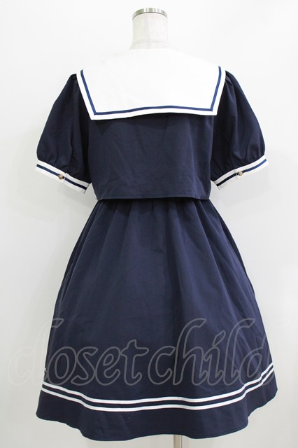 Amavel / Ribbon Emblem Setup風セーラーワンピース(ミドル丈) Free ネイビー H-26-04-07-004-CA-OP-NS-ZH [2100030000040017-H-26-04-07-004-CA-OP-NS-ZH]