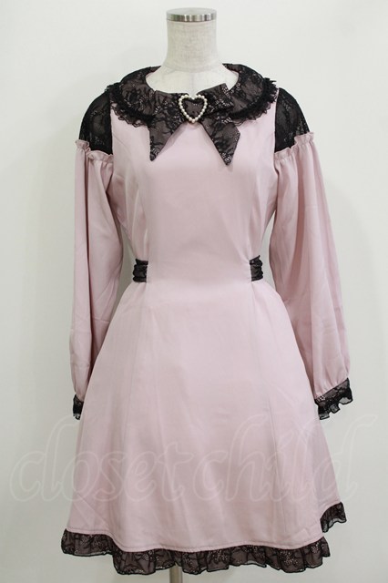 LIZ LISA / 肩レース切替ワンピース Free ピンク/ブラック H-26-04-07-027-LO-OP-NS-ZH