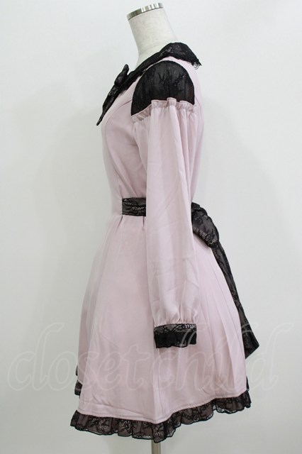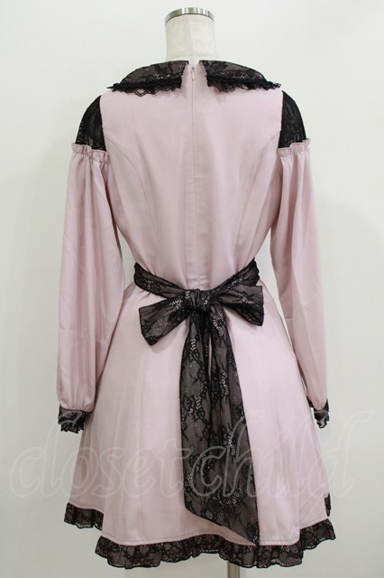 LIZ LISA / 肩レース切替ワンピース Free ピンク/ブラック H-26-04-07-027-LO-OP-NS-ZH [2100030000090809-H-26-04-07-027-LO-OP-NS-ZH]