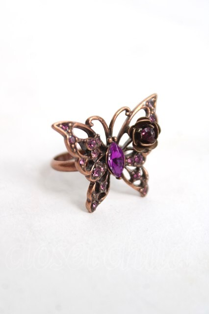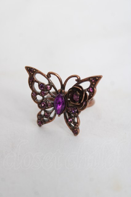 axes femme / 蝶×ビジューリング アンティークゴールド Y-26-04-05-003-AX-AC-SZ-ZY