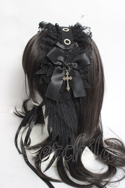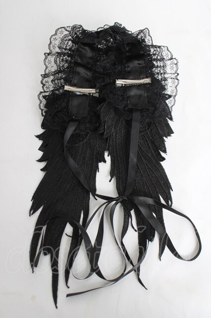 Asheri / 羽付きリボンレースヘッドドレス 黒 Y-26-04-05-046-LO-AC-SZ-ZY