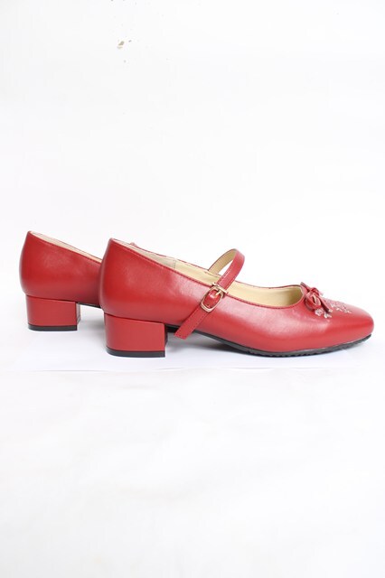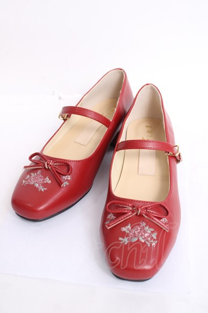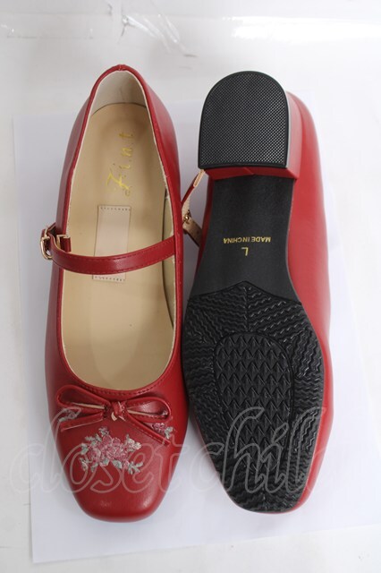 F i.n.t / リボン付き小花刺繍バレエパンプス L 赤 Y-26-04-05-054-CA-SH-SZ-ZY