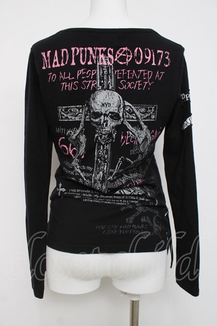 MAD / スカルクロスプリントカットソー M 黒 Y-26-04-05-075-PU-TO-SZ-ZY