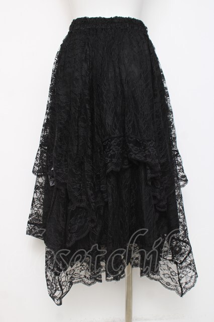 axes femme / ペチ付イレヘムレーススカート 黒 Y-26-04-05-115-AX-SK-SZ-ZY